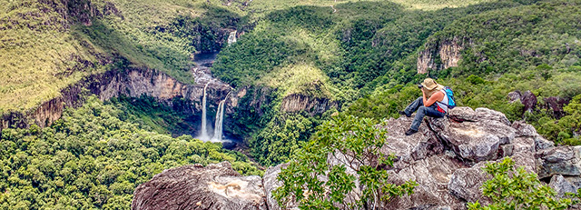Chegando no fim da trilha todo o esforço é compensado com a visão mais bonita que vimos na Chapada dos Veadeiros! Por sorte chegamos lá com o tempo ainda ensolarado.