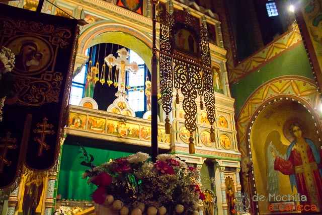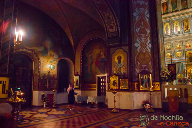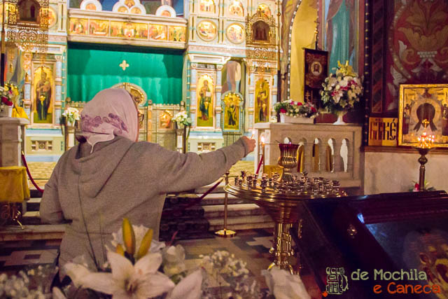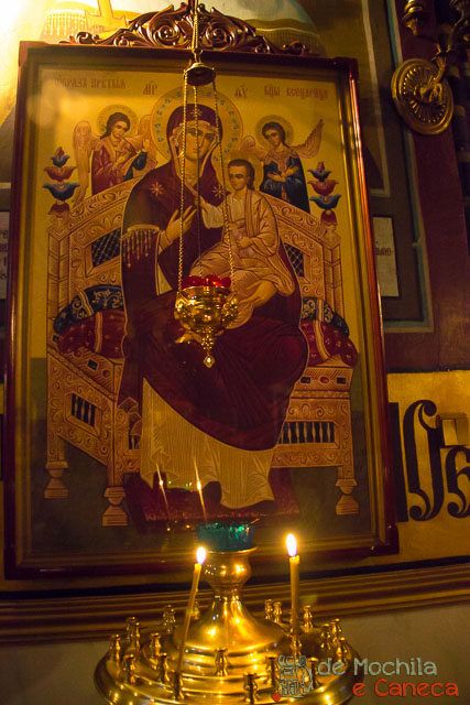 Quando entramos tinham várias pessoas em seu interior e nós podemos observar um pouco do cotidiano religioso dos fiéis ortodoxos.