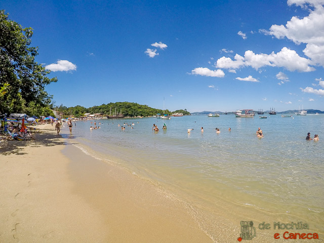No lado norte da praia, na alta temporada tem barco com turistas chegando e saindo o tempo todo. Além de um movimento maior de pessoas, a água deste lado da praia também fica mais escura devido ao vai e vem dos barcos.