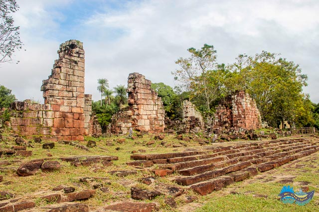 Chama a atenção a escadaria, que é uma das partes mais bem conservadas do complexo! O guia até nos falou que a escadaria é a única em todas as reduções existentes. Nenhuma outra tem escadaria pois estão em territórios nivelados.