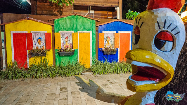 Além do comércio intenso, outra coisa que chama atenção e é possível encontrar em peso pelo centrinho, são galinhas de madeiras espalhadas por todos os cantos. Em nosso caso, destacamos a galinha vestida com a camisa do Athletico, que fica bem destacada em uma das esquinas mais movimentadas do centrinho.