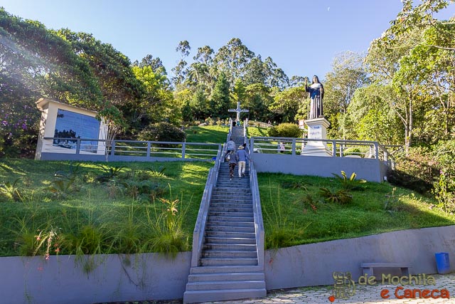 Para chegar até lá é preciso subir o morro, que tem cerca de 530 metros de altitude! Mas fique esperto, a subida (que é toda asfaltada e leva até a porta do santuário) é bem íngreme e exigirá bastante do seu veículo, tanto na subida, quanto na descida!