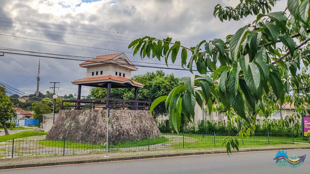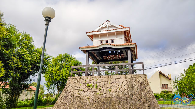 Sua arquitetura típica se assemelha a antigos castelos japoneses e sua criação fez parte de uma série de homenagens aos imigrantes japoneses, que na ocasião comemoravam 80 anos de imigração ao Brasil.