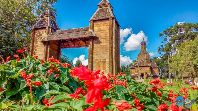 No Memorial Ucraniano há réplicas de construções típicas dos imigrantes que chegaram ao Brasil, com destaque para a réplica da igreja ucraniana mais antiga do brasil, a Igreja São Miguel da Serra do Tigre, localizada na cidade de Mallet, no interior do Paraná.