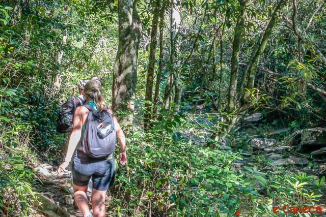 A trilha é bem tranquila para os cavalos e eles já estão tão acostumado a ir e voltar, que mal respondem os comandos quando você tenta desviar um pouco, por exemplo pra passar pelo lado direito de uma árvore ao invés do lado esquerdo.