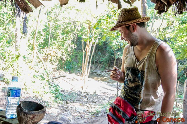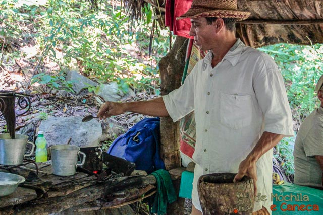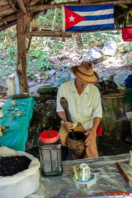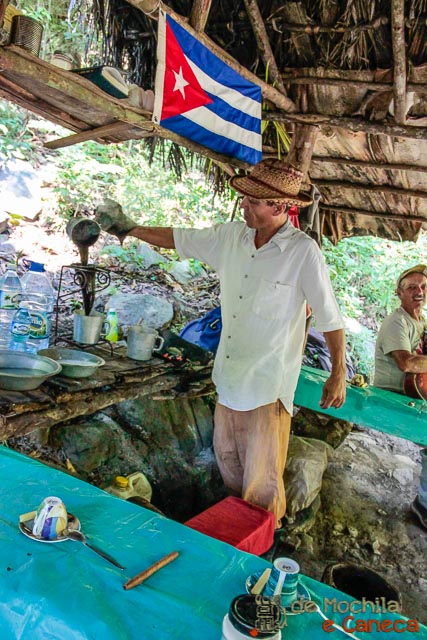 Após deixar os cavalos, seguimos uma trilha e em poucos minutos chegamos até uma pequena cabana, onde tivemos um dos momentos mais marcantes em nossa viagem para Cuba. Nesta Cabana, um legitimo Guajiro oferece aos visitantes que passam pelo local a oportunidade de tomar um café cubano feito na hora!