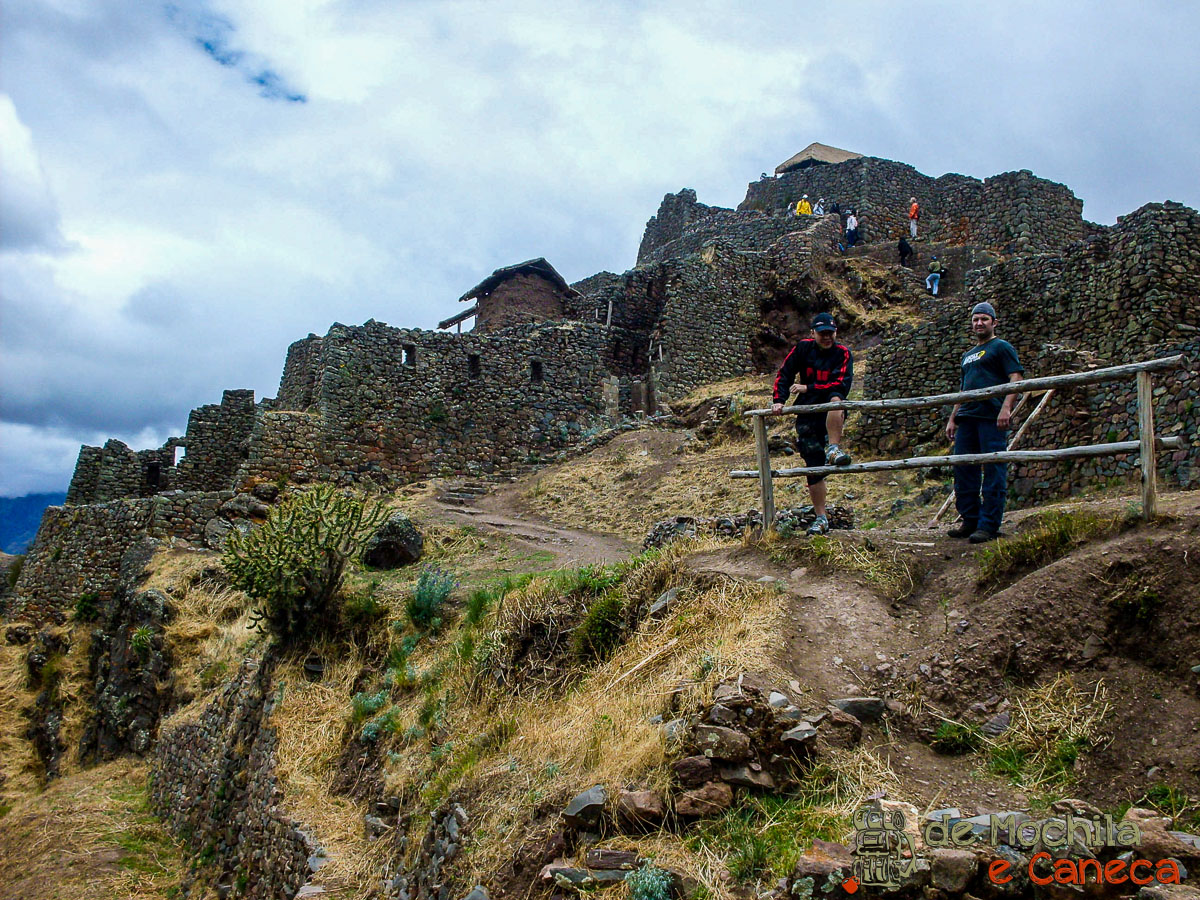 Numa pequena trilha, com uma vista fantástica dos enormes terraços agrícolas, caminhamos até as ruínas das edificações construídas por povos pré-incas e Incas.
