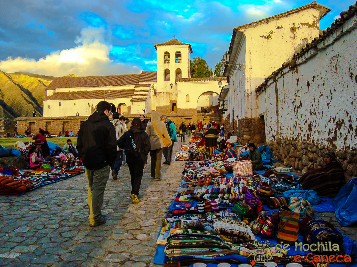 O primeiro destino foi a Feira de Pisac, uma feira repleta de produtos artesanais típicos peruanos. que é uma verdadeira tentação pra quem tem dinheiro sobrando. Saímos da feira no horário marcado, pois tínhamos sido avisados claramente, de que o ônibus sairia exatamente no horário estabelecido e quem não estivesse presente iria ficar curtindo a feira até que voltássemos das ruínas,  pior é que fica mesmo, uma mulher teve que correr atrás do nosso ônibus que já estava indo embora da feira.