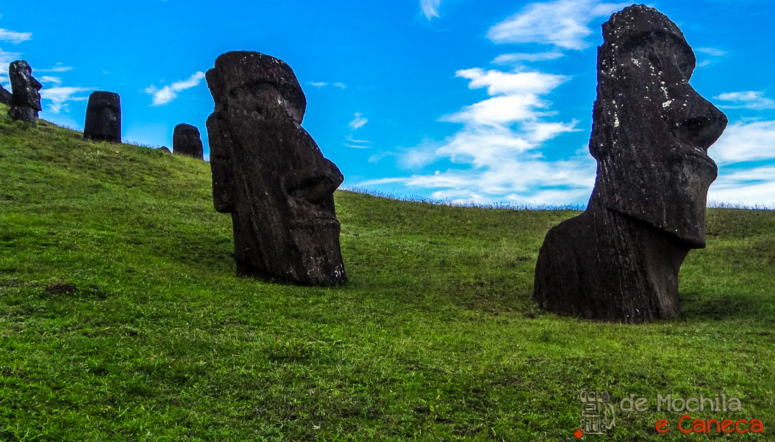 Quando você visita o Rano Raraku, você fica imaginando como é que eles faziam pra levar os Moais até os demais lugares da ilha. Bom, existem diversas teorias, mas nenhuma é totalmente convincente. Mas isso é apenas um dos enigmas existentes na ilha! Melhor nem pensar muito né!?